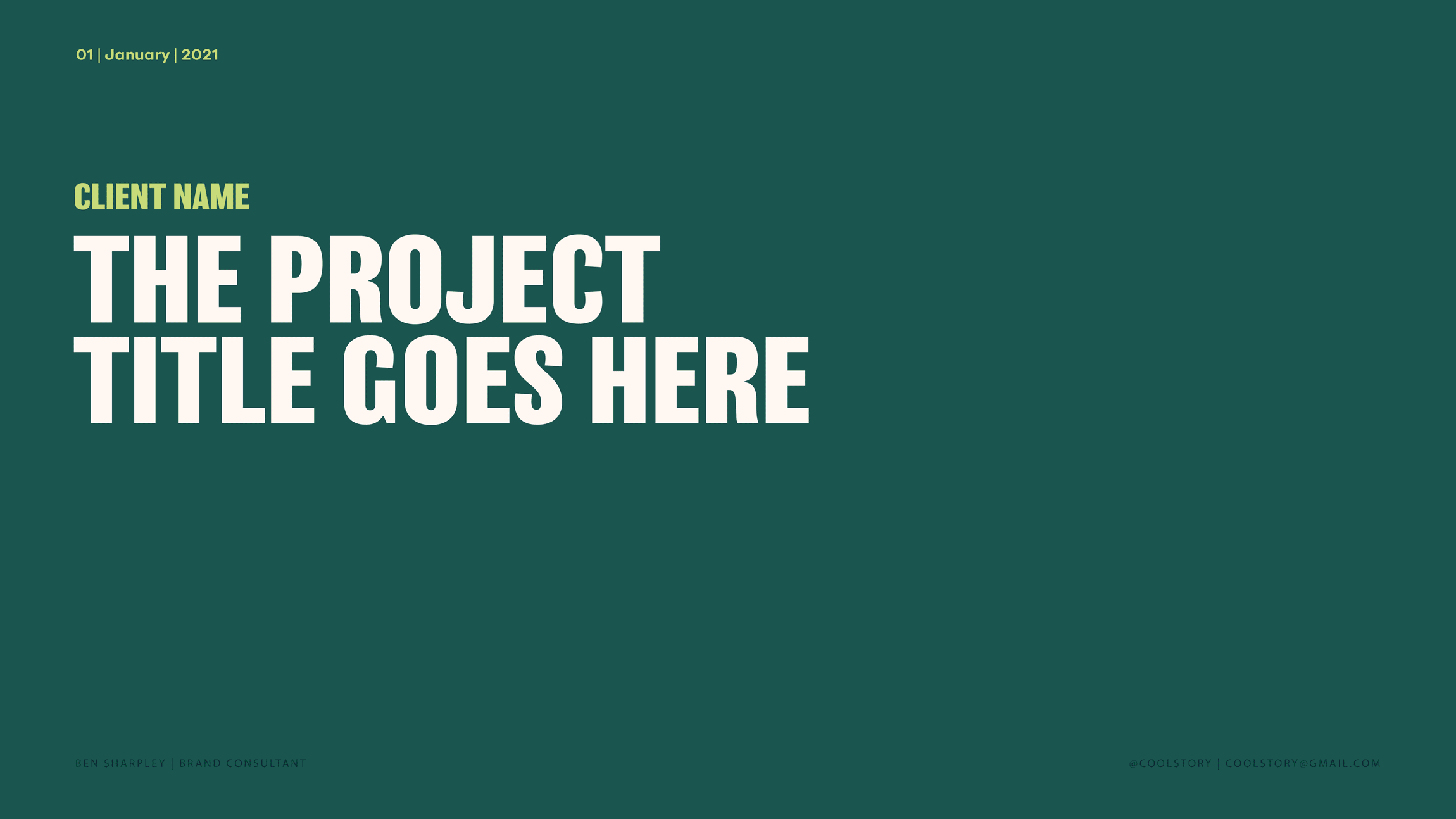 Ben is a brand strategy consultant who came to me with the idea of Cool Story – the business name under which he wants to work. The design objective was to create a personal brand identity system that can flex to suit a wide variety of clients. Ben has a playful and eccentric personality, but has been perceived to be overly stern and serious in his professional life. To counteract this, I created a personable brand that is friendly and approachable.